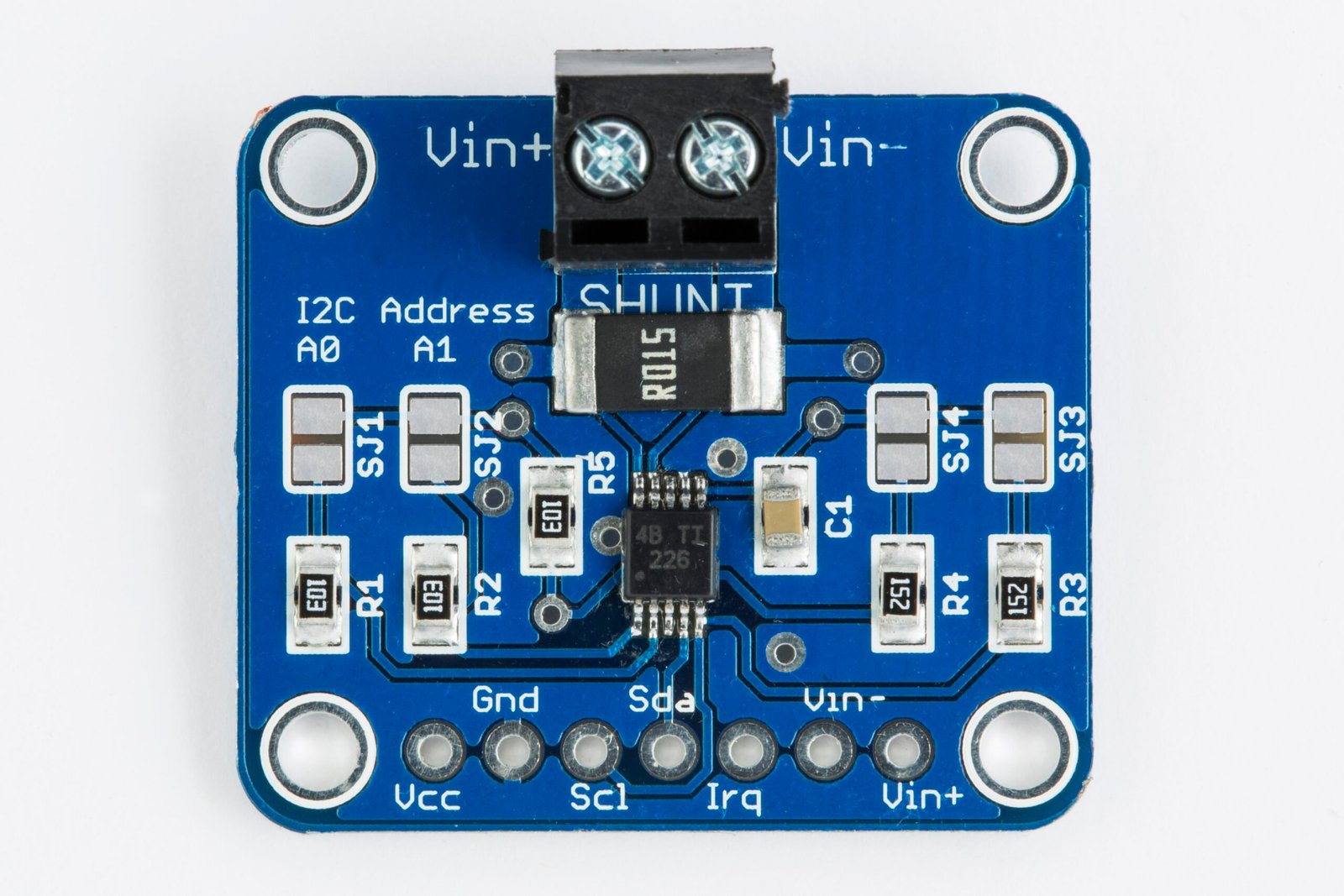 With its 16-bit resolution, the INA226 delivers highly accurate readings (1.25 mA for current, 1.25 mV for voltage) and outputs precise, real-time data directly to your master device via I2C.